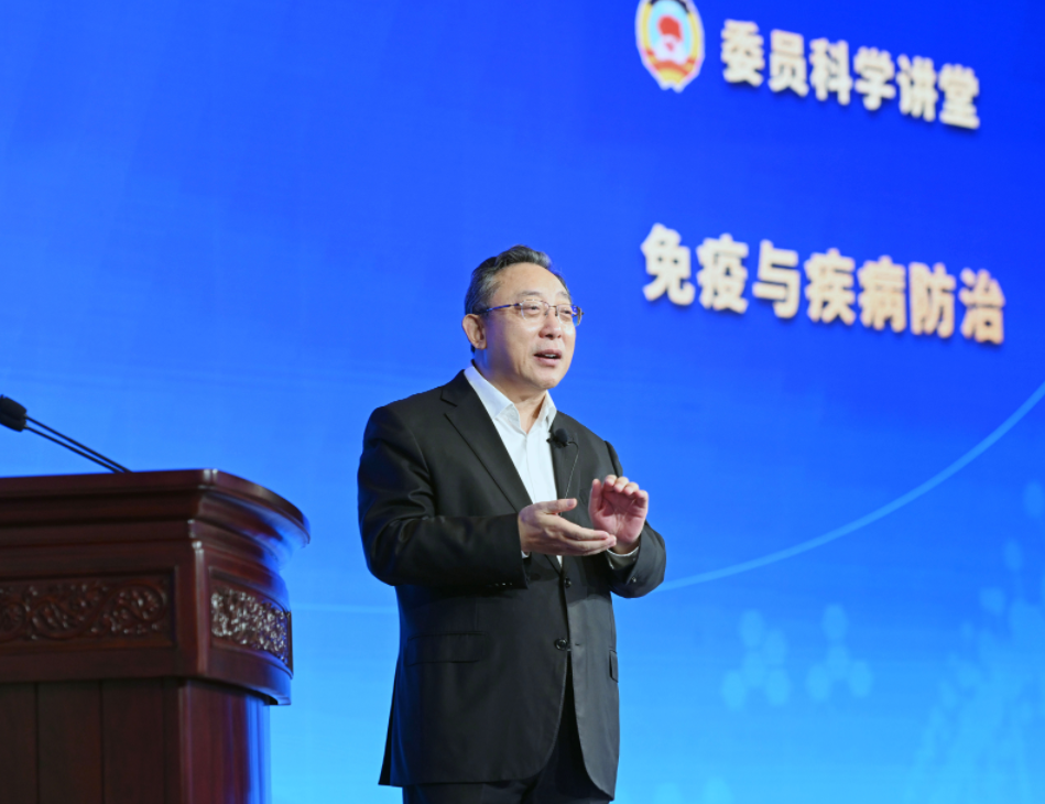 全国政协教科卫体委员会副主任、国家卫生健康委员会原副主任曹雪涛以“免疫与疾病防治”为题作科普讲座。人民政协报记者 齐波 摄