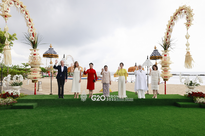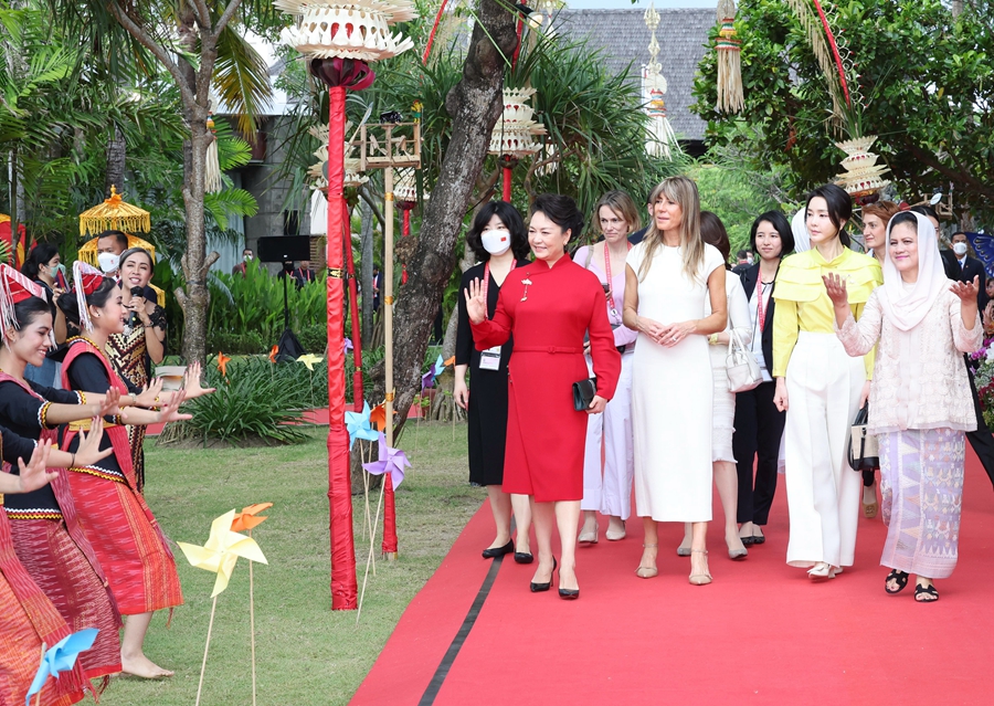 新华社印度尼西亚巴厘岛11月15日电 当地时间15日上午,国家主席习近平夫人彭丽媛在巴厘岛出席印度尼西亚总统夫人伊莉亚娜组织的二十国集团领导人第十七次峰会领导人配偶活动。